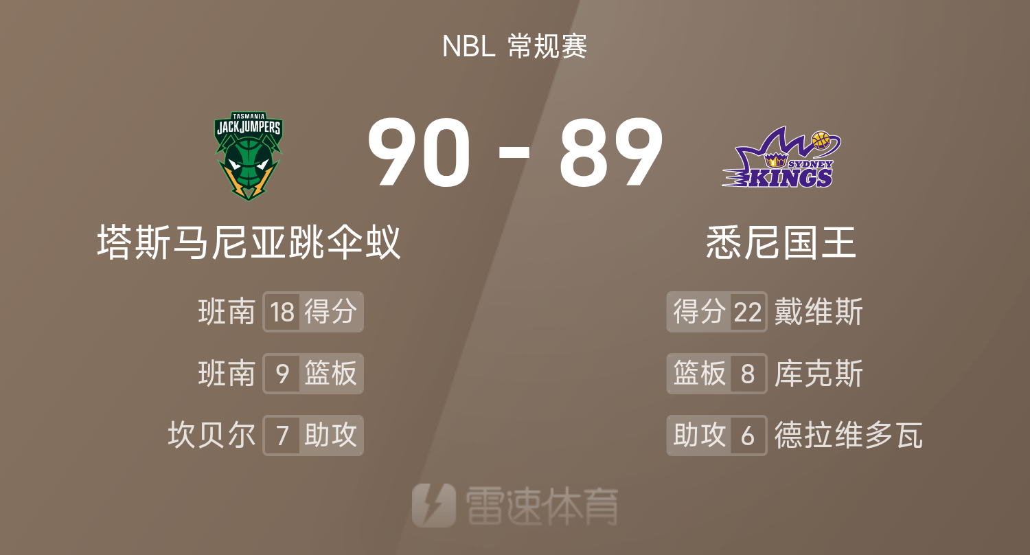 6686 กีฬา ข่าว 26 ตุลาคม ในฤดูกาลปกติของ NBL ฤดูกาล 25/26 ทีม Sydney Kings เผชิญหน้ากับมดกระโดดร่มแทสเมเนีย จบเกม Sydney Kings แพ้ Tasmanian Skydiving Ants 89-90 แบนแนนทำคะแนนได้ 18 แต้ม 9 รีบาวด์ 2 แอสซิสต์เพื่อพาทีมคว้าชัยชนะ ส่วนเดวิสทำคะแนนสูงสุดในเกมได้ 22 แต้ม 6 รีบาวน์และ 5 แอสซิสต์