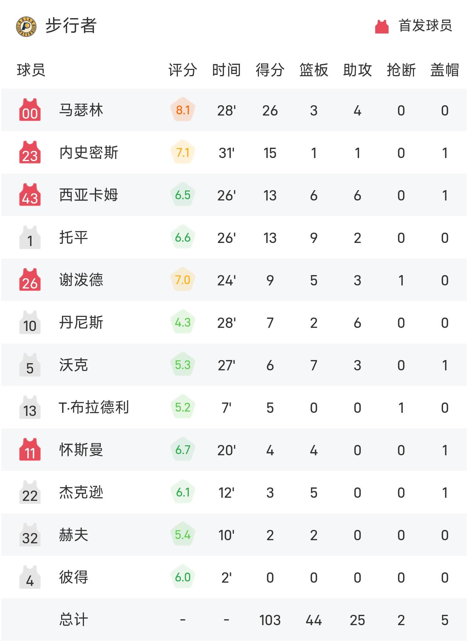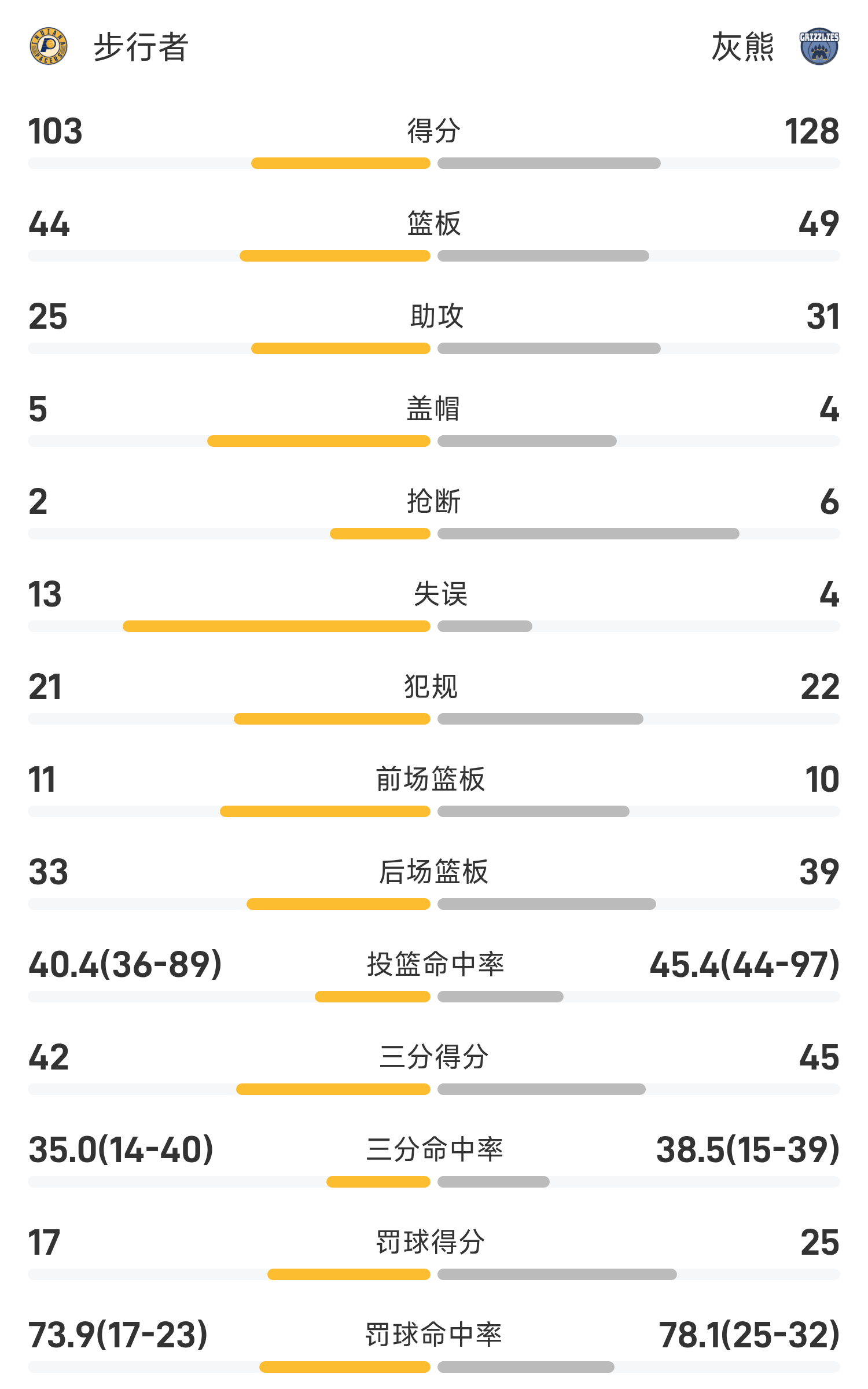 ในตอนท้ายของเกม Grizzlies เอาชนะ Pacers 128-103