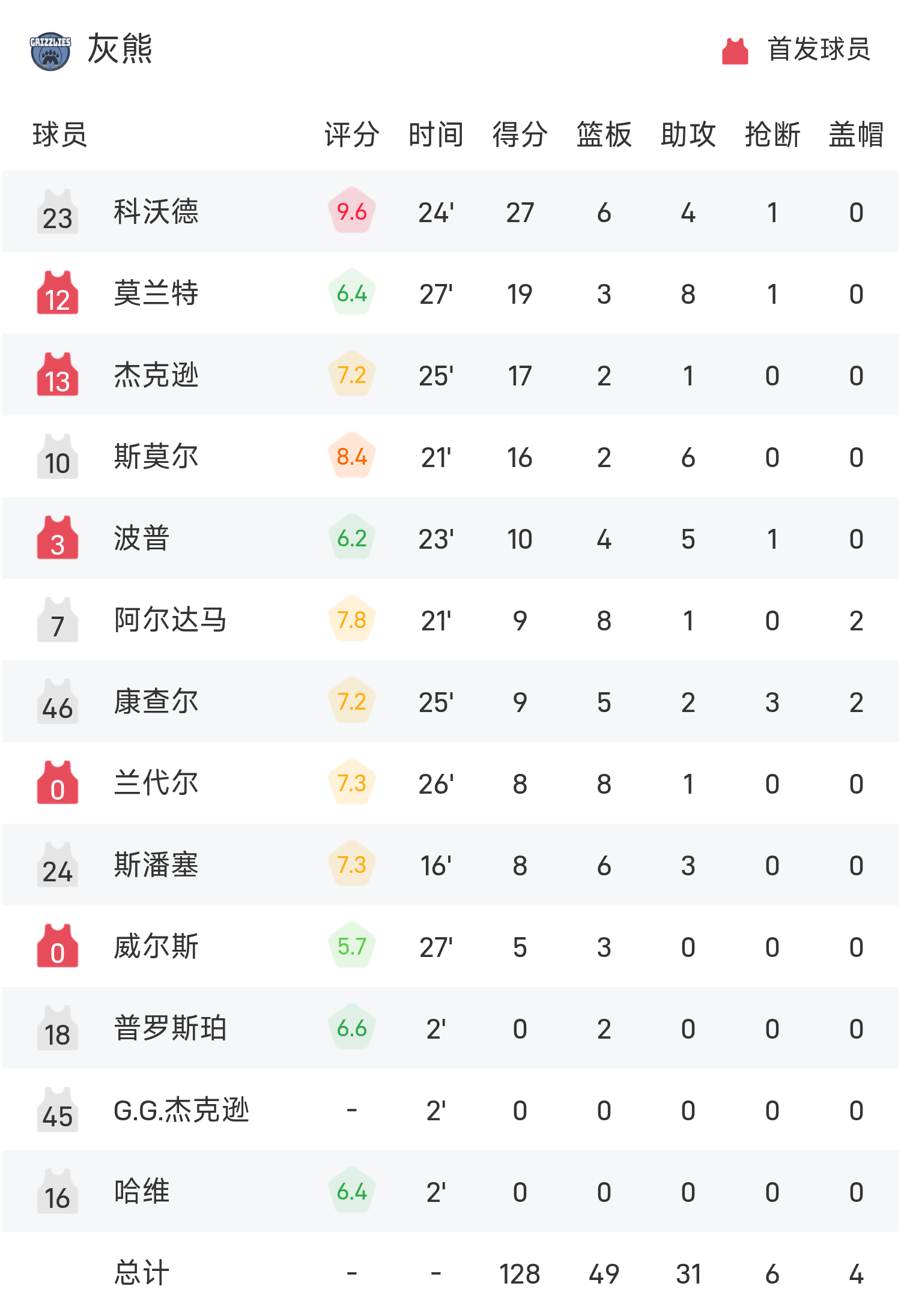 Coward ทำคะแนนสูงสุดในเกมได้ 27 แต้ม 6 รีบาวน์และ 4 แอสซิสต์ นำทีม Grizzlies คว้าชัยชนะ