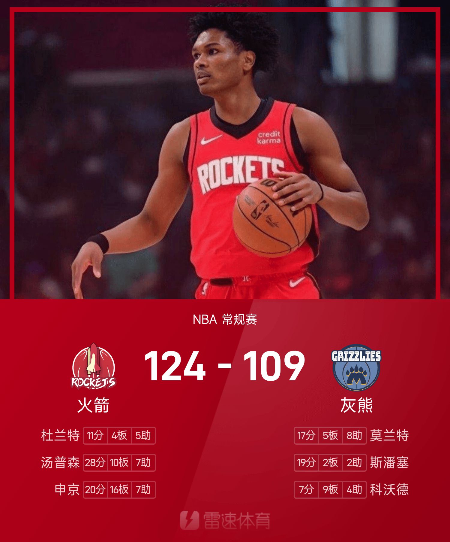 Rockets 124-109 Grizzlies
