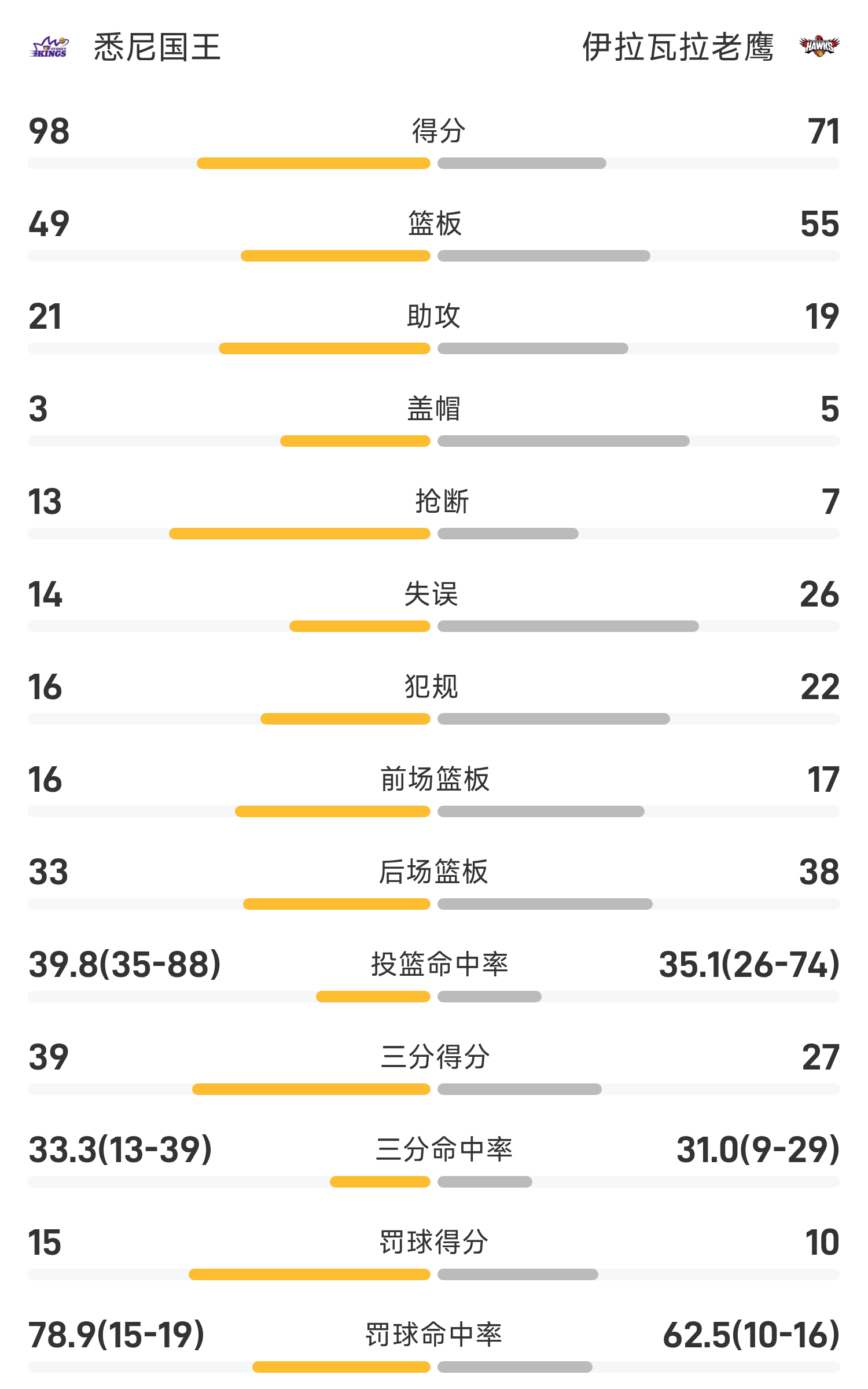 ในตอนท้ายของเกม อิลลาวาร์รา อีเกิลส์ แพ้ ซิดนีย์ คิงส์ 71-98