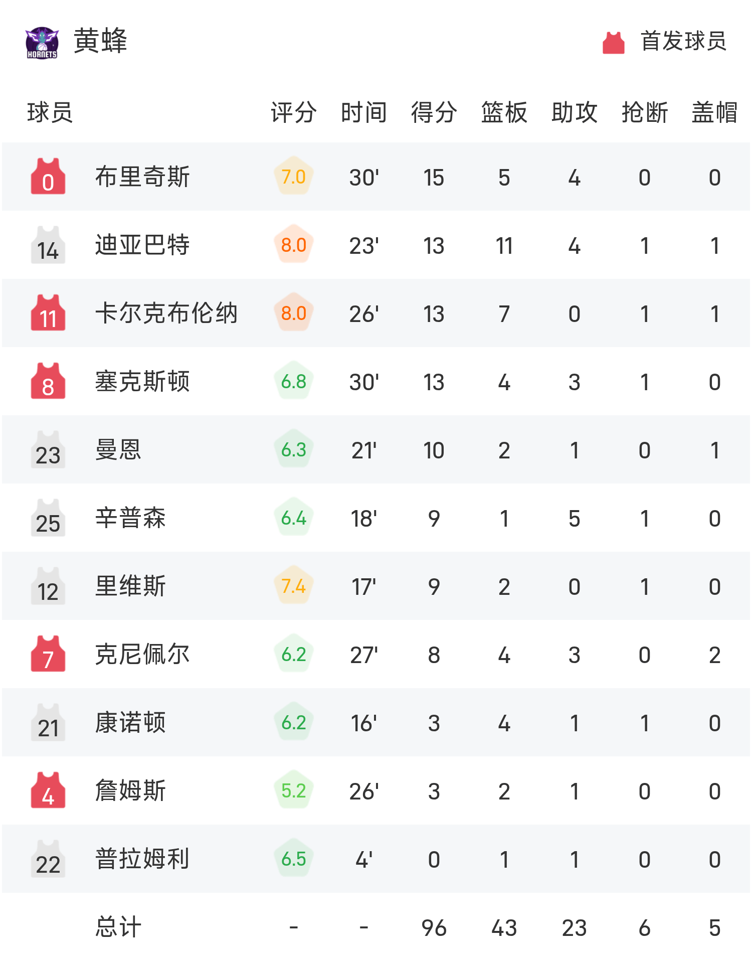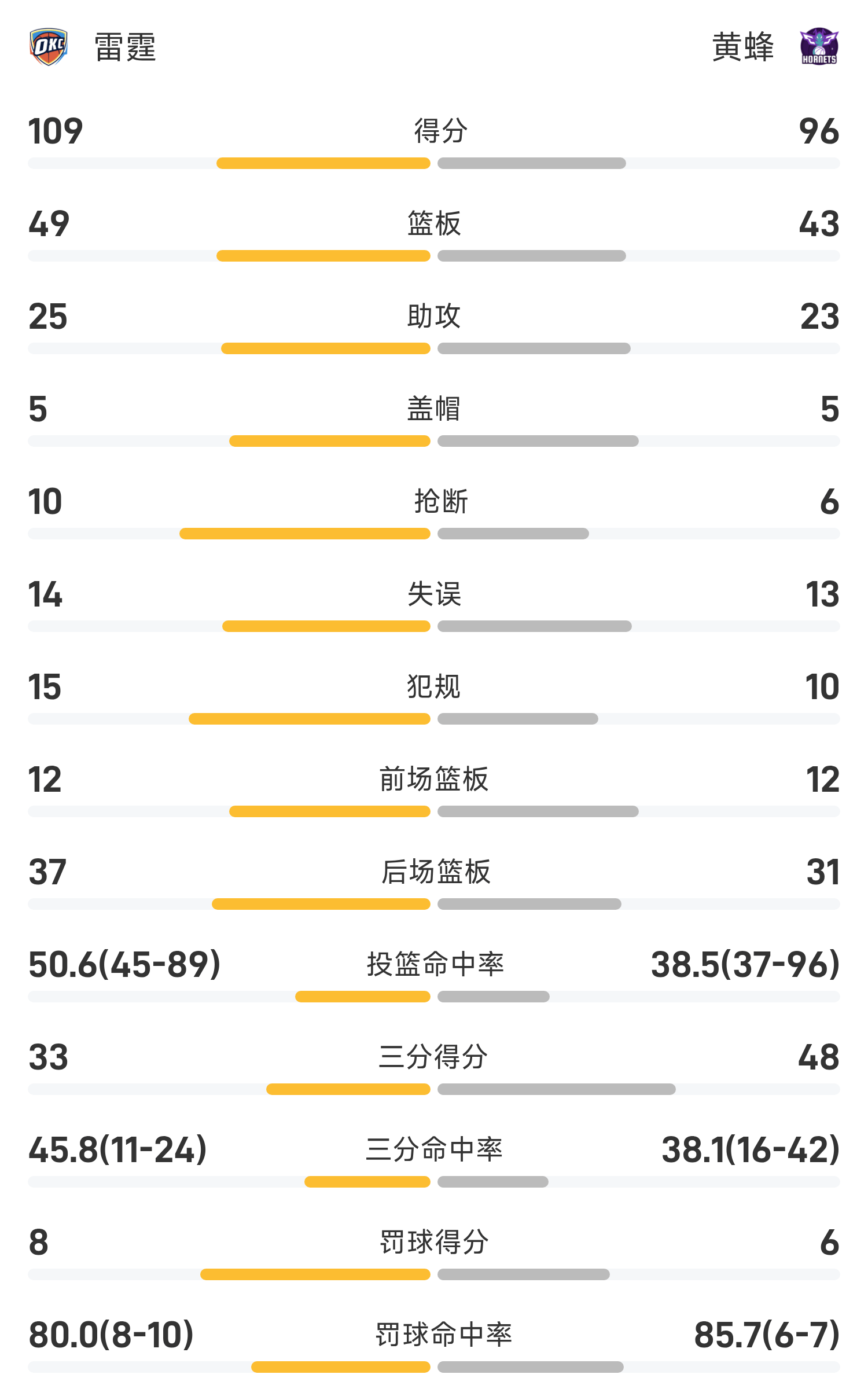จบเกม ฮอร์เน็ตส์ แพ้ ธันเดอร์ 96-109