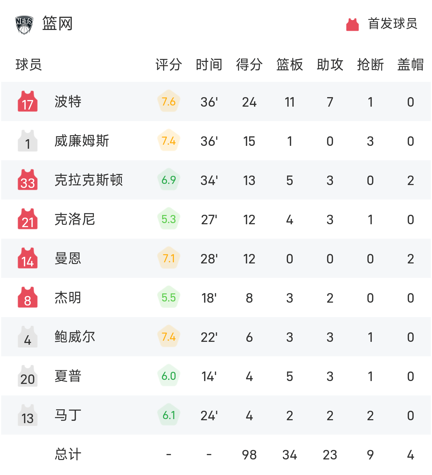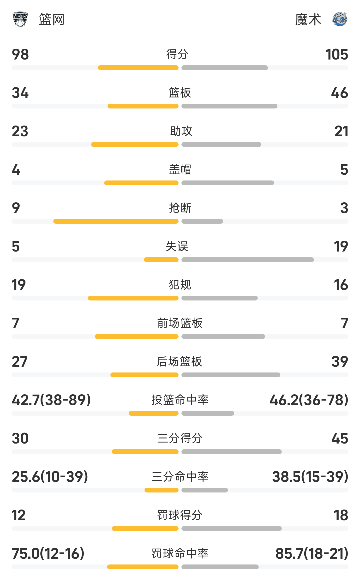 ในตอนท้ายของเกม เมจิค เอาชนะ เน็ตส์ 105-98