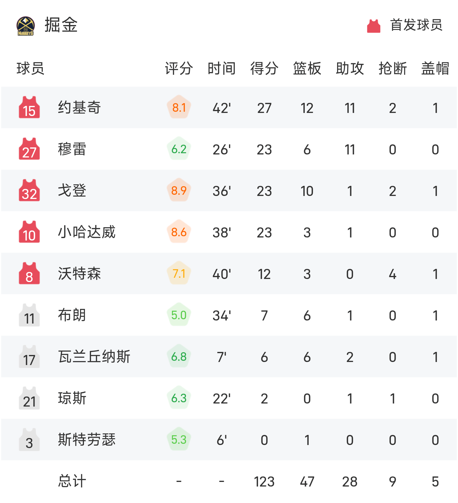 รายงานเกม NBA โยคิชมี 27 แต้ม 12 รีบาวด์ 11 แอสซิสต์ นักเก็ตเอาชนะทิมเบอร์วูล์ฟส์ 123-112