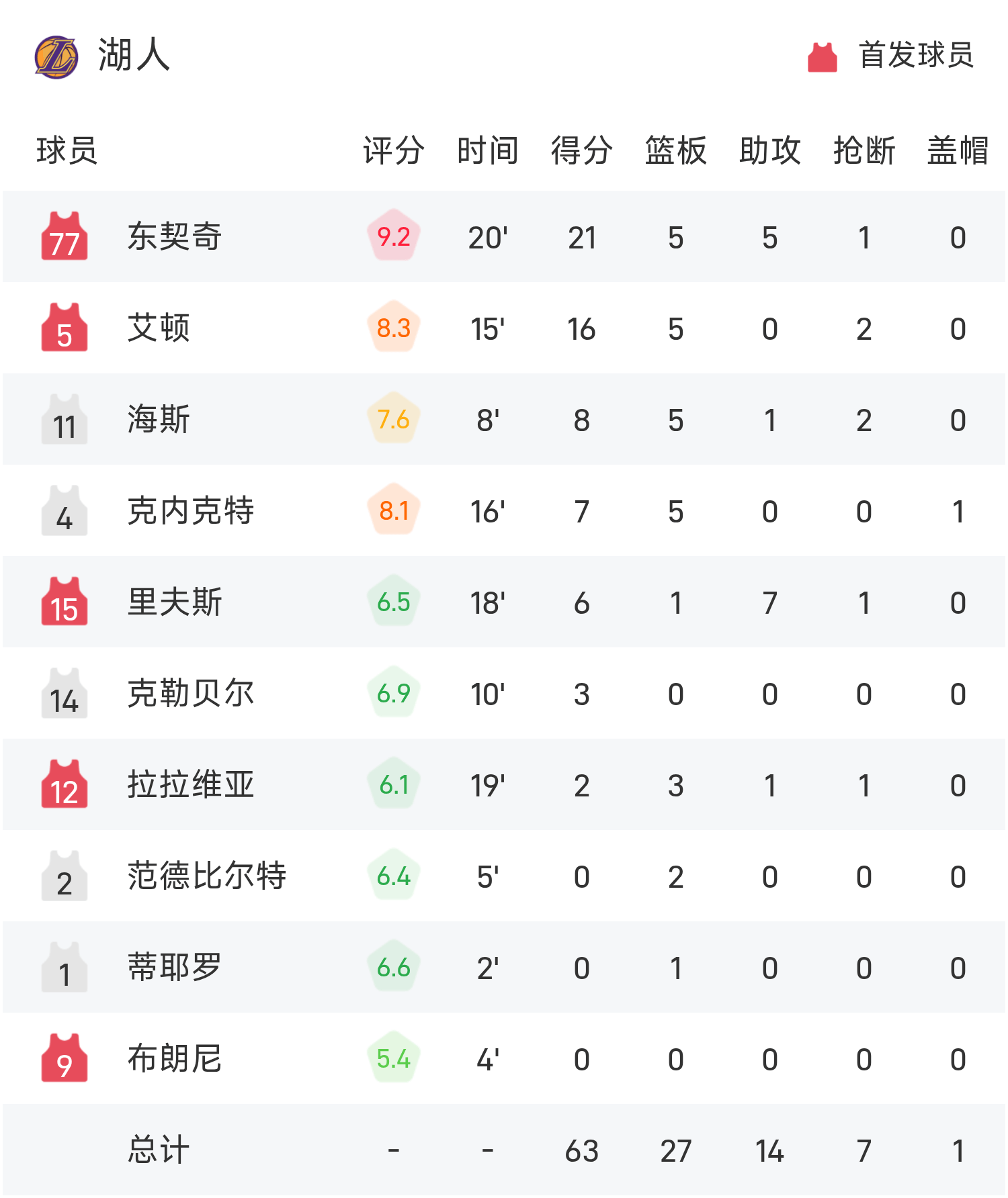 ดอนซิชทำคะแนนสูงสุดในเกม 21 แต้ม 5 รีบาวด์ 5 แอสซิสต์ อันเทโทคูมโปมี 14 แต้มและเสีย 5 แต้ม และคุซมายิง 0 จาก 6 แต้มและทำได้เพียง 1 แต้ม