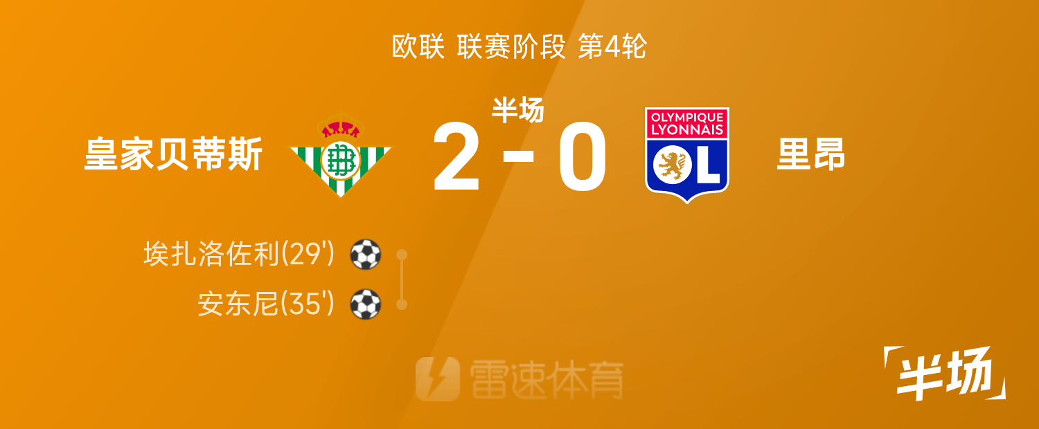 พักครึ่งยูโรป้า ลีก : อองโตนี่ยิงคนเดียว, เรอัล เบติส 2-0 ลียงชั่วคราว
