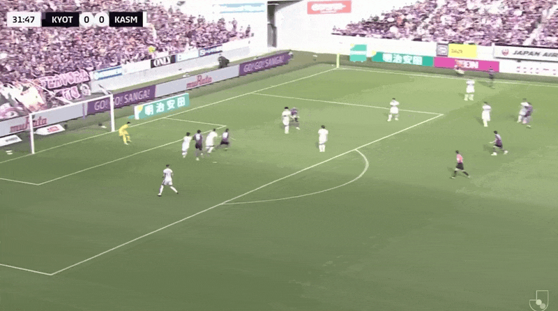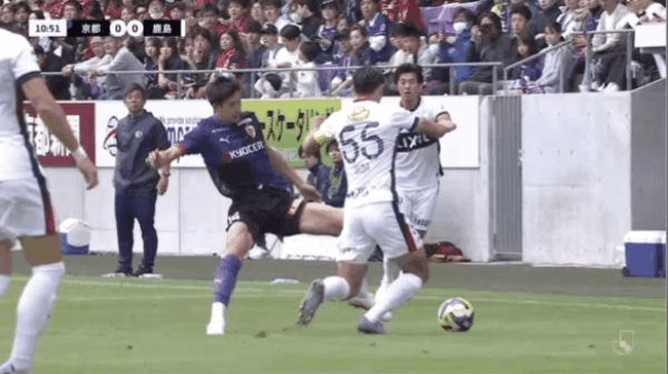 9’ กลิ่นดินปืนเริ่มแรงขึ้น! โอกาสโจมตีจากลูกตั้งเตะของคาชิมะ ผู้เล่นจากทั้งสองฝ่ายผลักกันจนสุดโค้ง