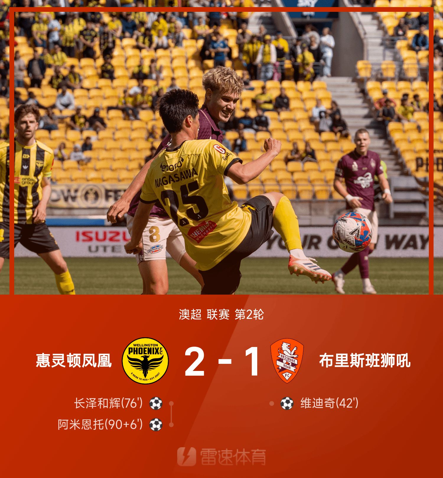 6686 ข่าวกีฬาวันที่ 26 ตุลาคม ในรอบที่สองของฤดูกาล A-League 25/26 เวลลิงตัน ฟีนิกซ์ เอาชนะบริสเบน โรร์ 2-1 ครึ่งแรกของเกม วิดิช ใช้ประโยชน์จากโอกาสที่ผิดของเจมส์ในการทำประตู ครึ่งหลัง นางาซาวะ คาซูกิ ยิงประตูตีเสมอ ส่วน อาร์เมียนโต้ ยิงลูกสุดท้ายให้ทีมเก่าในช่วงทดเวลาบาดเจ็บ