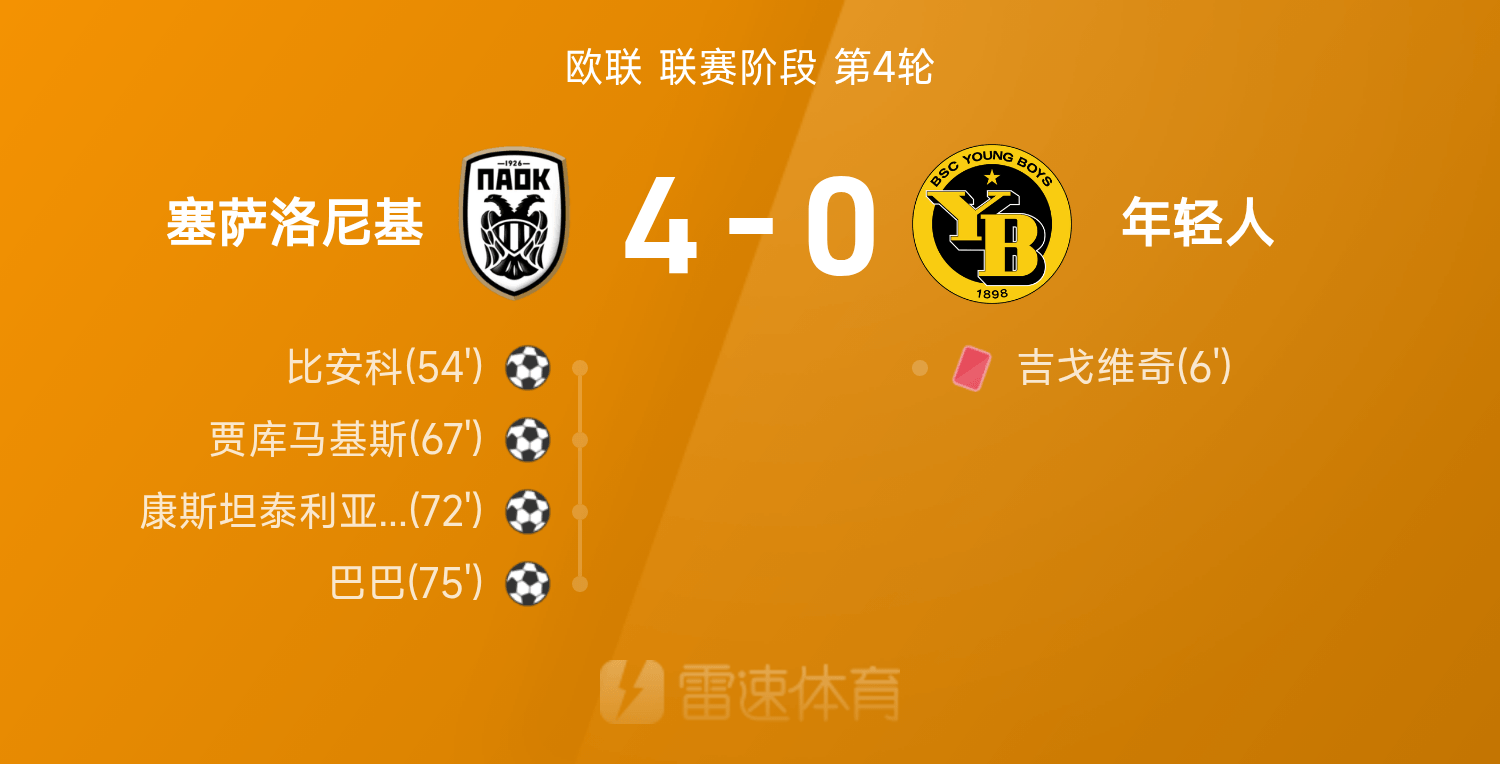 รายงานผลการแข่งขันยูโรปาลีก บาบายิง 1 จ่าย 1 เทสซาโลนิกิเอาชนะยังบอยส์ 4-0