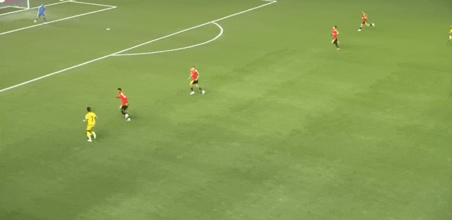 23' คาสตาญจ่ายบอลเข้าไปในเขตโทษ และอานาเบคอฟโหม่งอย่างทรงพลังของทรอสซาร์ดในพื้นที่สามวินาที