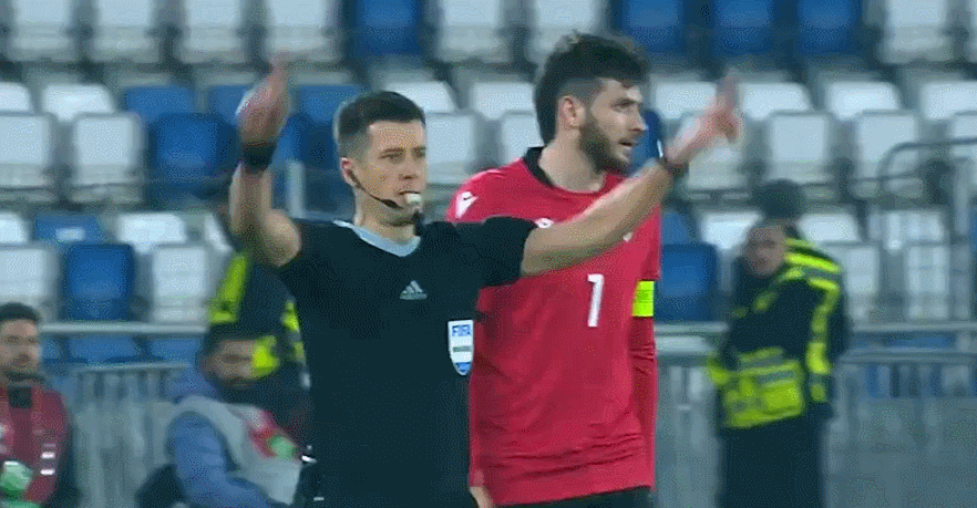 รายชื่อผู้เล่นตัวจริงของจอร์เจีย: 1-Mamardashvili, 14-Locheshwali, 2-Mamchashvili, 13-Gohorishvili, 5-Golchidze, 17-Kiteishvili, 7-Kvaratshelia, 10- Davitashvili, 15-เมควาบิชวิลี่, 22-ทาบาตาดเซ, 8-ชิวิวัดเซ
