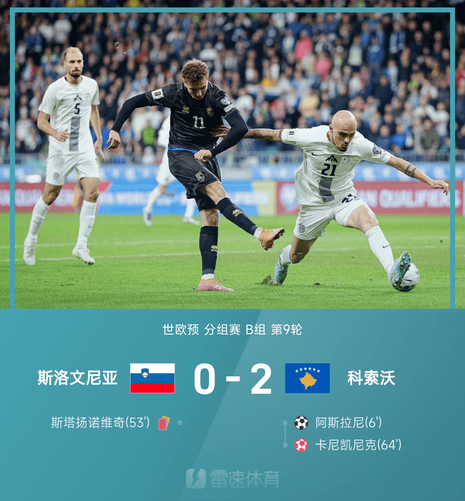 6686 Sports รายงานเมื่อวันที่ 16 พฤศจิกายนว่าในรอบที่ 9 ของกลุ่ม B ของรอบคัดเลือกโลกยุโรปปี 2026 โคโซโวเอาชนะสโลวีเนีย 2-0 ตลอดทั้งเกม อัสลานีหลอกคู่ต่อสู้ในโซนสามวินาทีและทำประตูได้ คานิเกนิคทำเข้าประตูตัวเองเพื่อสร้างกระแสโลก ผู้เล่นสำรองของสตายาโนวิชเข้ามาในที่เกิดเหตุและถูกส่งใบเหลืองสองครั้งติดต่อกัน และโอบลัคแสดงความแข็งแกร่งซ้ำแล้วซ้ำเล่าเพื่อช่วยผู้ช่วยให้รอด