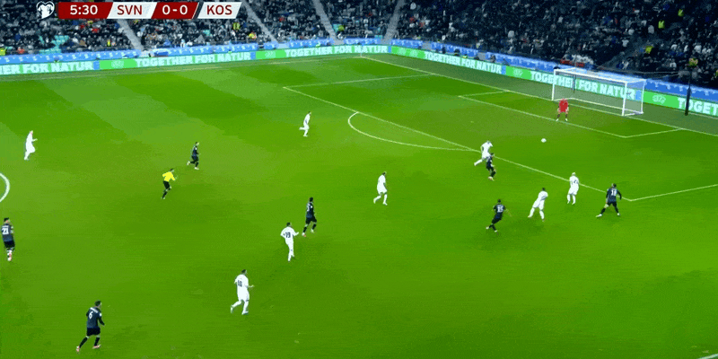 62’ แนวรับของสโลวีเนียเปิดกว้าง และ Oblak ก็เซฟอย่างกล้าหาญจาก Muslija