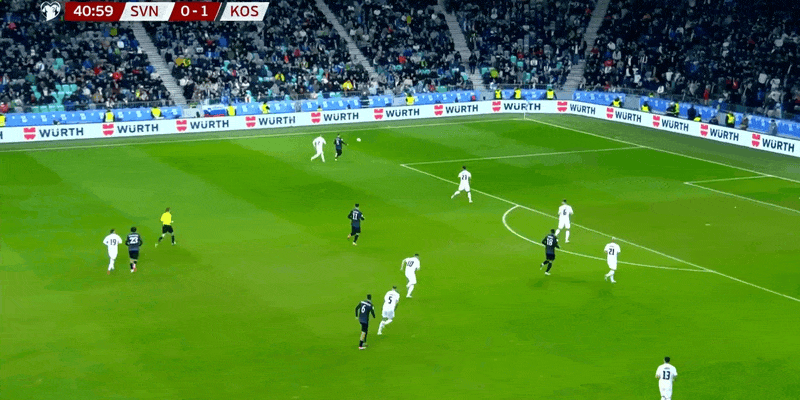 11’ กองหลังโคโซโวทำพลาดในการเคลียร์บอล และวิโปตนิกก็เซฟลูกยิงได้