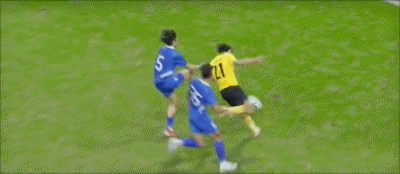 19' จงเหวิน หันกลับมาและเลี้ยงบอลในโซนสามวินาทีแล้ววอลเลย์ และบอลพลาดเป้า