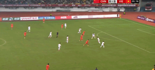 33’ ทีมจีนส่งบอลคุกคามจากทางซ้ายไปยังเขตโทษและผู้เล่นที่อยู่ข้างหน้าประตูก็ช้ากว่าก้าวหนึ่ง