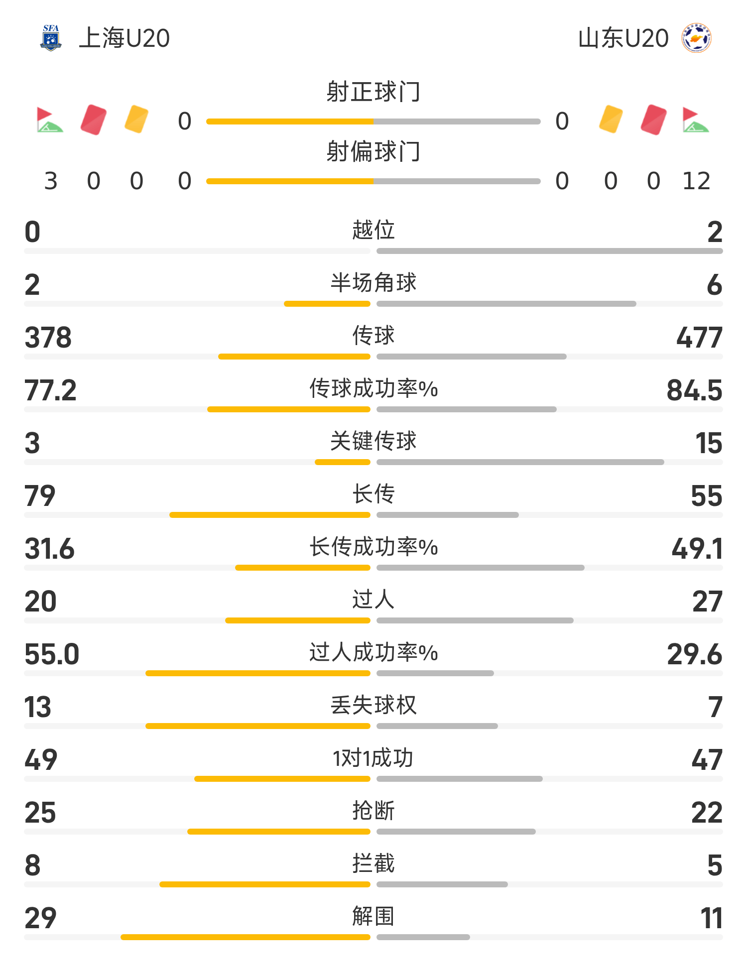 ในการรบ 12 หลา Gong Ruicong จากทีม Shandong U20 พลาดจุดโทษในรอบที่สอง และผู้เล่นคนอื่นๆ ทั้งหมดจากทั้งสองทีมได้โยนโทษ สุดท้ายทีมเซี่ยงไฮ้ U20 เอาชนะซานตง U20 5-4 ในการต่อสู้ระยะ 12 หลา และคว้าอันดับที่สาม